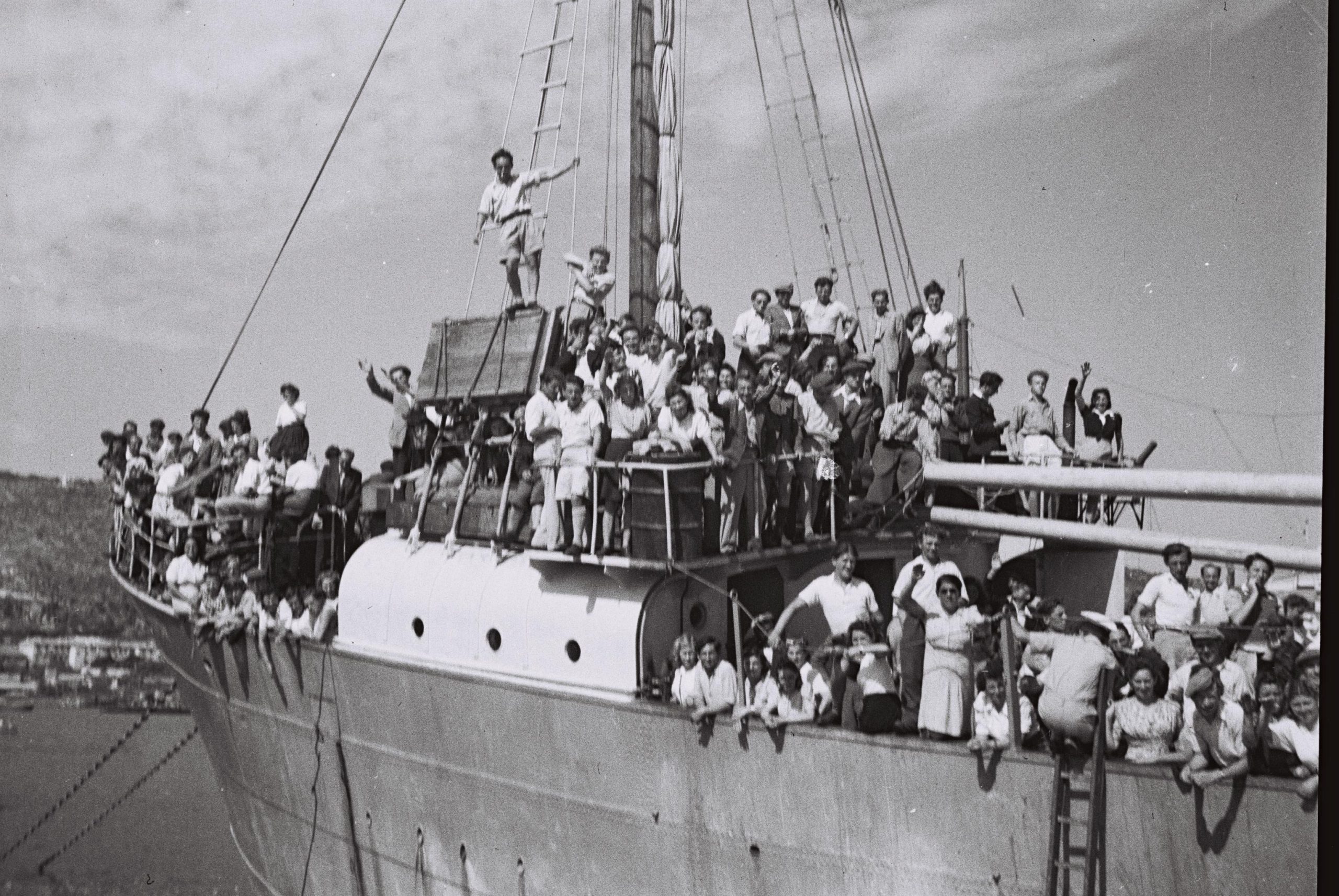 The Sladeks arrive in the harbor of Haifa on Israeli Independence Day—exactly one year after the establishment of the State of Israel in 1948.