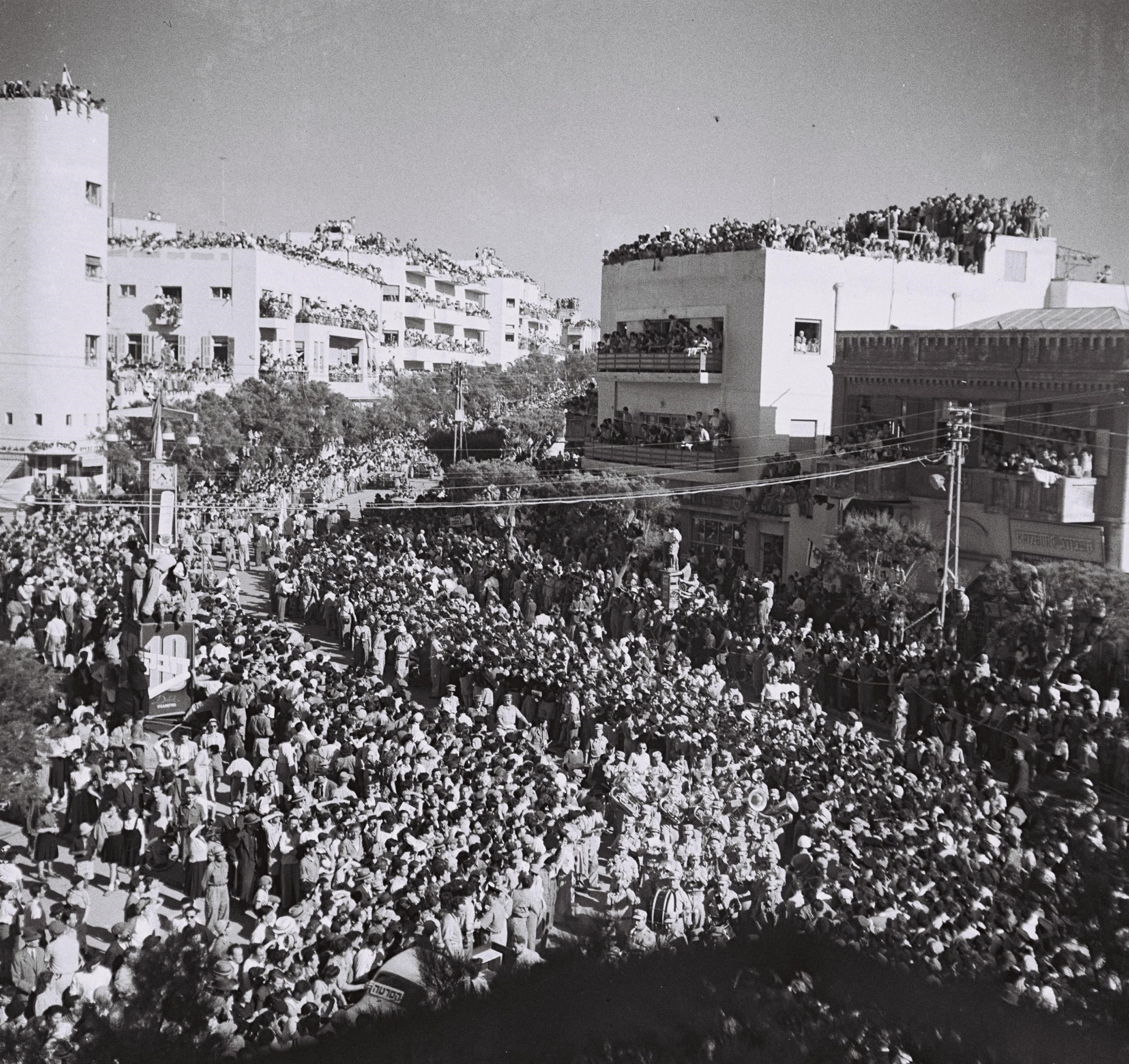 Celebrations in Tel Aviv on the first anniversary of Israel's founding, May 14, 1949