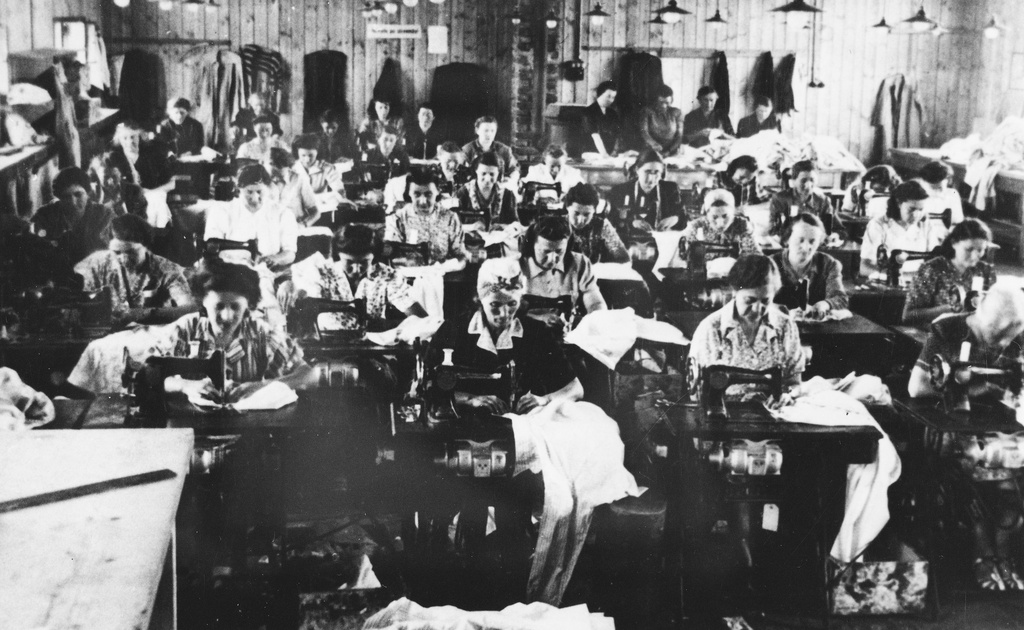 Prisoners sew clothing at a Slovak labor camp (c. 1942 – 1944)